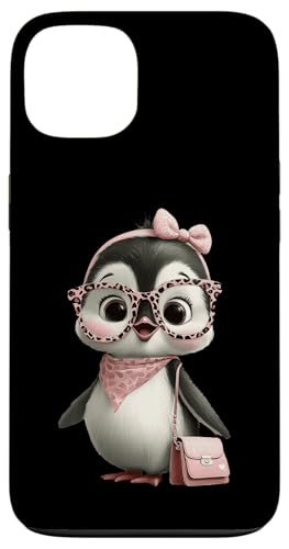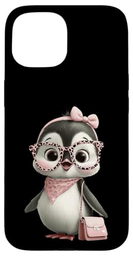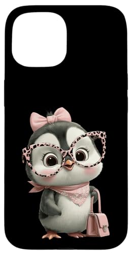 Lunettes Bébé Pingouin Kawaii Personnage Rose Léopard Portrait Coque pour iPhone 15