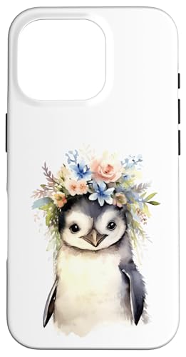 Adorable bébé Pingouin Aquarelle avec Couronne Florale Coque pour iPhone 16 Pro