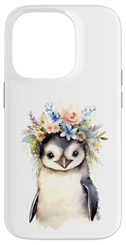 Adorable bébé Pingouin Aquarelle avec Couronne Florale Coque pour iPhone 14 Pro