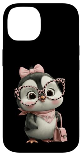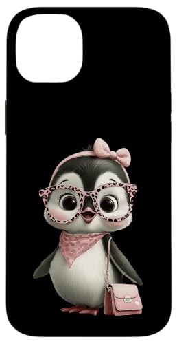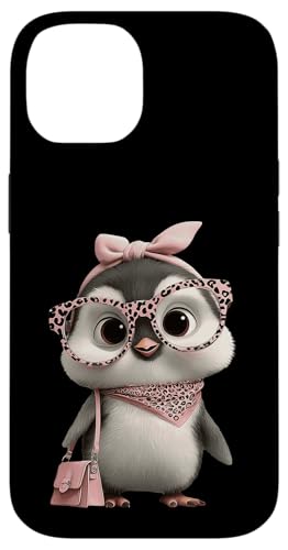 Lunettes Bébé Pingouin Kawaii Personnage Rose Léopard Portrait Coque pour iPhone 14 Plus