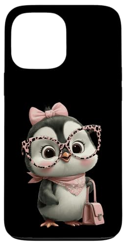 Lunettes Bébé Pingouin Kawaii Personnage Rose Léopard Portrait Coque pour iPhone 13 Pro Max