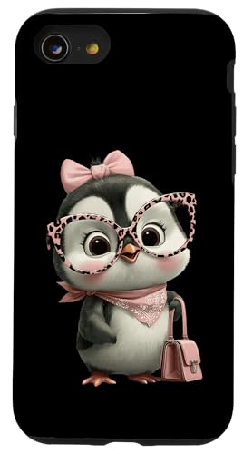 Lunettes Bébé Pingouin Kawaii Personnage Rose Léopard Portrait Coque pour iPhone SE (2020) / 7/8