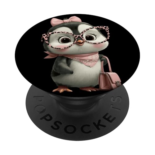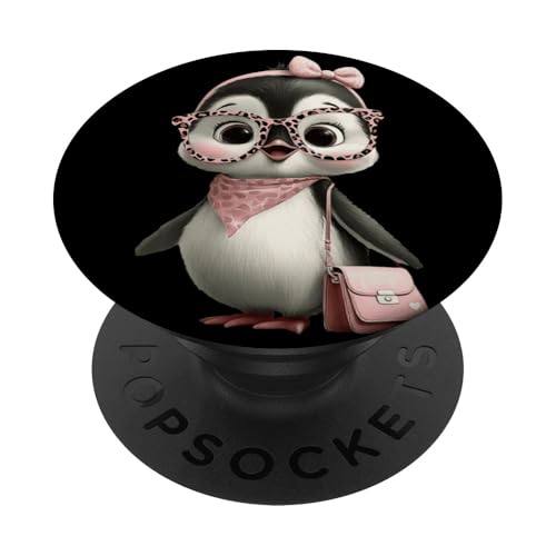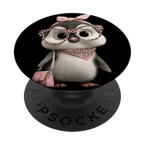 Lunettes Bébé Pingouin Kawaii Personnage Rose Léopard Portrait PopSockets PopWallet pour MagSafe