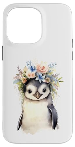 Adorable bébé Pingouin Aquarelle avec Couronne Florale Coque pour iPhone 14 Pro Max