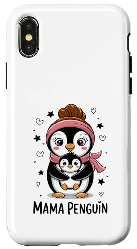 Mama Pingouin Mère Mère Bébé Animal Famille Coque pour iPhone X/XS