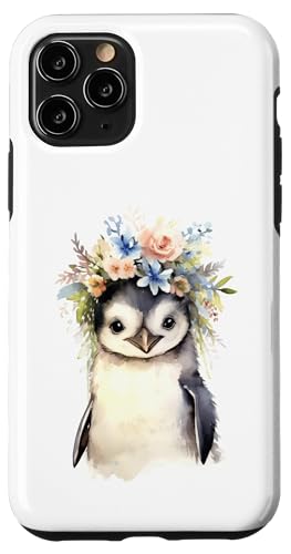 Adorable bébé Pingouin Aquarelle avec Couronne Florale Coque pour iPhone 11 Pro