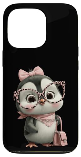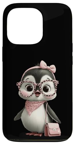 Lunettes Bébé Pingouin Kawaii Personnage Rose Léopard Portrait Coque pour iPhone 13 Pro