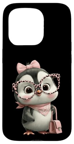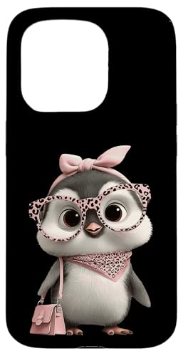 Lunettes Bébé Pingouin Kawaii Personnage Rose Léopard Portrait Coque pour iPhone 15 Pro