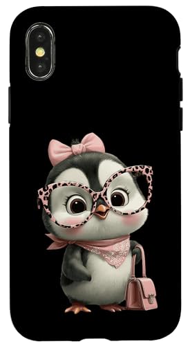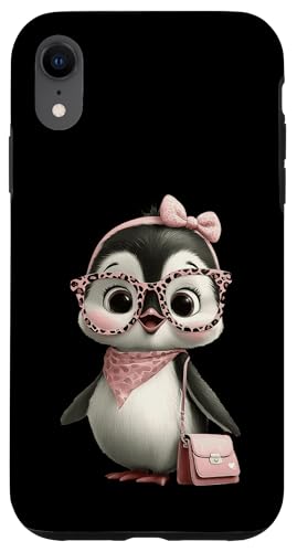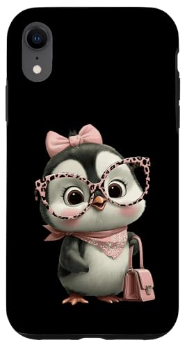 Lunettes Bébé Pingouin Kawaii Personnage Rose Léopard Portrait Coque pour iPhone XR