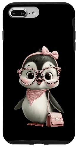 Lunettes Carrées Bébé Pingouin Kawaii Rose Léopard Portrait Coque pour iPhone 7 Plus/8 Plus