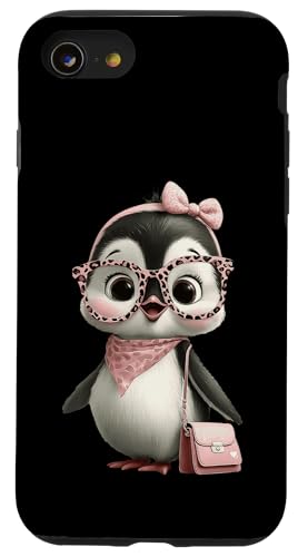 Lunettes Carrées Bébé Pingouin Kawaii Rose Léopard Portrait Coque pour iPhone SE (2020) / 7/8