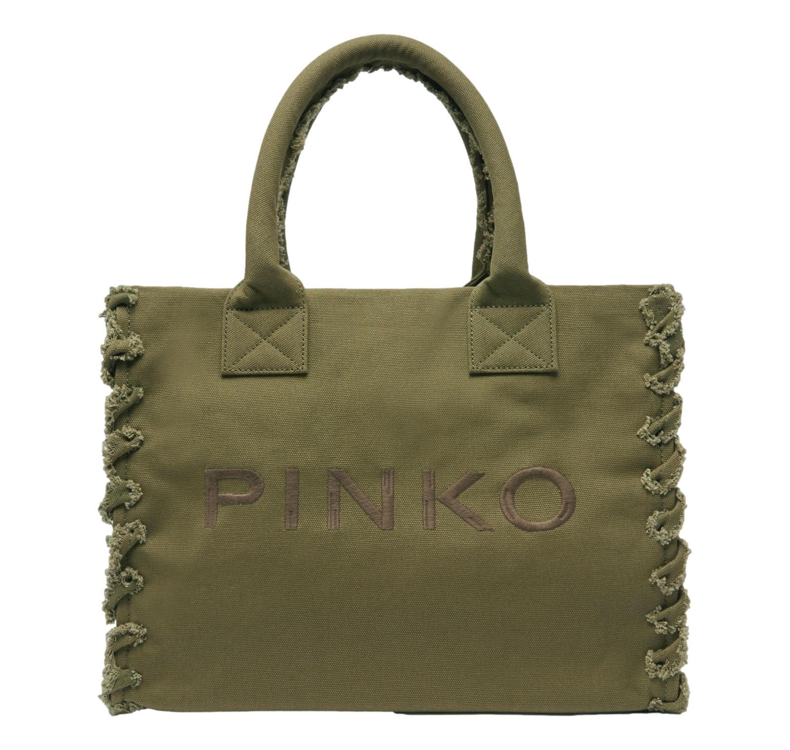 PINKO Sac Femme Beach Shopping En Toile Recyclée V64Q 100782 Vert Olive