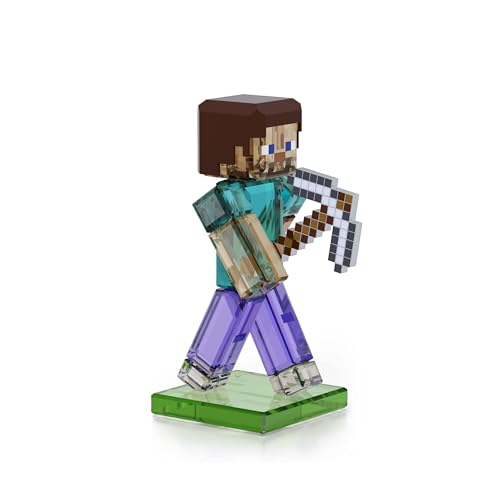 Swarovski Décoration, Personnage de Minecraft, Steve et sa pioche en Fer, Statuette en Cristal avec 436 facettes et des détails métalliques, Couleur Bleu, Vert, Violet et Marron