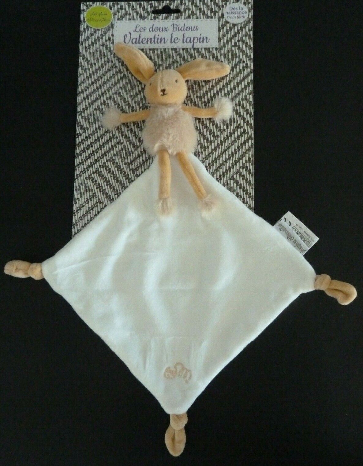 60.* DOUDOU PELUCHE PIOUPIOU ET MERVEILLES LAPIN BEIGE BLANC MOUCHOIR 100% NEUF