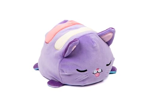 Pioupiou et Merveilles - Cushablez - Peluche Réversible – Chat Magique Violet/Bleu 22 cm – Félin Doux et Expressif – Change d’Humeur en Un Geste – Peluche 2 en 1 Féérique