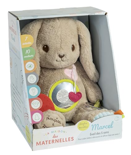 Pioupiou et Merveilles - La Maison des Maternelles - Marcel d'activités - 30 cm - Lapin à 5 Sens - Boîte Cadeau - Peluche Toute Douce - Dès la Naissance - 16817