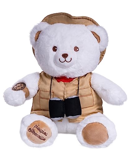 Pioupiou et Merveilles - Les Gaston Metiers - Peluche Gaston Aventurier(e)- Fais Le Pleins de découvertes - Il est Toujours prêt pour Te Suivre Partout - 40 cm de Hauteur - 16662