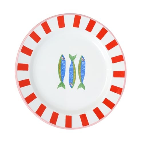 Talking Tables assiette en émail Bon Appetit fait main design poissons 25cm légère idéale pour repas en extérieur pique-nique camping plage vaisselle estivale élégante compatible lave-vaisselle