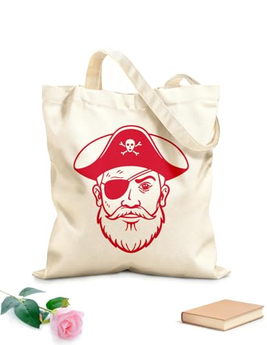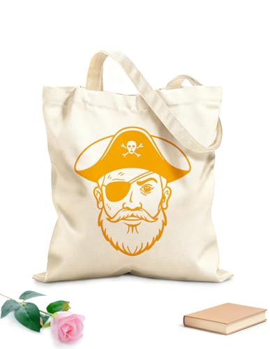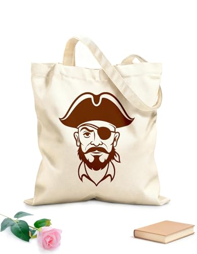 AILOONG Sacs femme en toile de coton tissu épais de 340g/m² Portrait de pirate avec cache-œil et chapeau de capitaine, thème nautique et aventureux Matière douce pour la peau