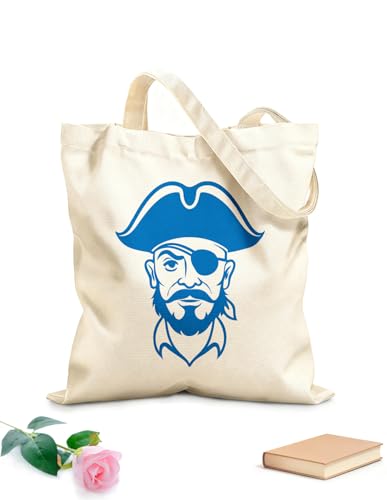 XIARON Sacs de courses en polyester et coton capitaine pirate audacieux avec cache-œil et barbe parfaite tissu épais de 340g/m² Réutilisable M Bleu