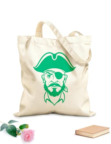 XIARON Sacs de courses en polyester et coton capitaine pirate audacieux avec cache-œil et barbe parfaite tissu épais de 340g/m² Réutilisable M Vert