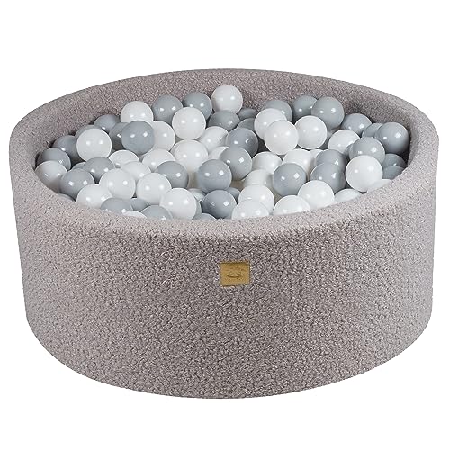 MEOWBABY Piscine À Balles pour Bébé - Rond 90x40cm Piscine a Balle pour Enfant avec 300 Balle, Boucle, Gris: Blanc/Gris