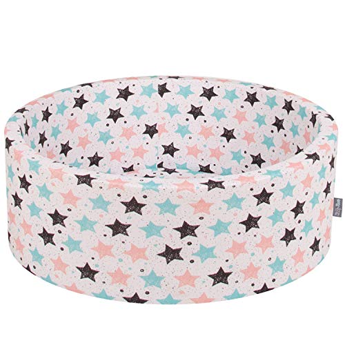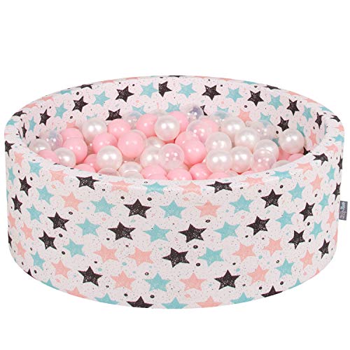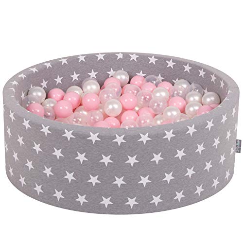 KiddyMoon 90X30cm/300 Balles ∅ 7Cm Piscine À Balles Pour Bébé Rond Fabriqué En UE, Étoiles Blanc-Gris: Transp-Argenté-Perle-Babyblue