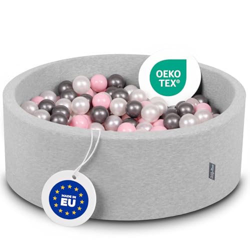 KiddyMoon Piscine À Balles pour Bébé Rond 90X30cm/300 Balles 7Cm Fosses À Boules Jouet Enfant, Gris Clair:Perle/Rose Poudré/Argenté
