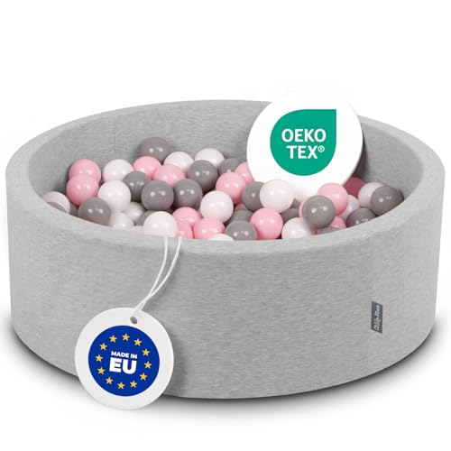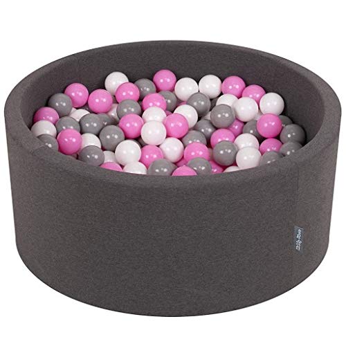 KiddyMoon 90X40cm/300 Balles ∅ 7Cm Piscine À Balles pour Bébé Rond Fabriqué en UE, Gris Foncé:Gris/Blanc/Rose