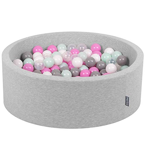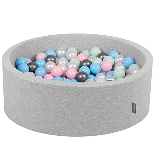 KiddyMoon Piscine À Balles pour Bébé Rond 90X30cm/300 Balles 7Cm Fosses À Boules Jouet Enfant, Gris Clair:Perle/R. Poudré/Babyblue/Menthe/Argent
