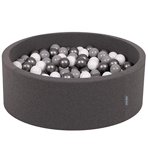 KiddyMoon Piscine À Balles pour Bébé Rond 90X30cm/200 Balles 7Cm Fosses À Boules Jouet Enfant, Gris Foncé:Perle/Gris/Transparent/Baby Blue/Menthe