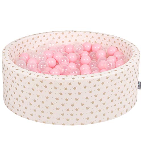 KiddyMoon OK30D-236 Piscine à balles, doré/écru : Rose/Transparent, 90 x 30 cm, 300 balles