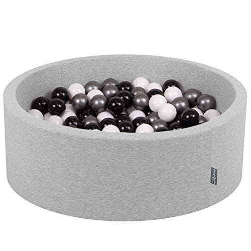 KiddyMoon Piscine À Balles pour Bébé Rond 90X30cm/300 Balles 7Cm Fosses À Boules Jouet Enfant, Gris Clair:Blanc/Noir/Argenté