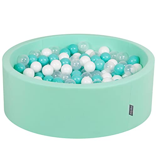 KiddyMoon 90X30cm/200 Balles ∅ 7Cm Piscine À Balles Pour Bébé Rond Fabriqué En UE, Menthe: Turq. Clair-Blanc-Transparent-Babyblue