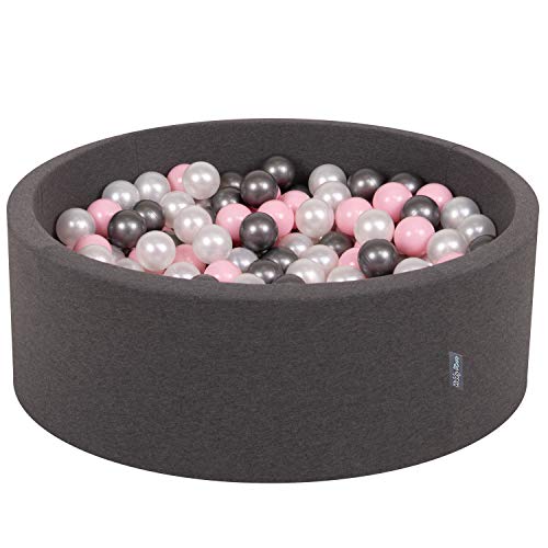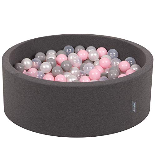 KiddyMoon 90X30cm/200 Balles ∅ 7Cm Piscine À Balles Pour Bébé Rond Fabriqué En UE, Gris Foncé:Perle/Gris/Transparent/Rose Clair