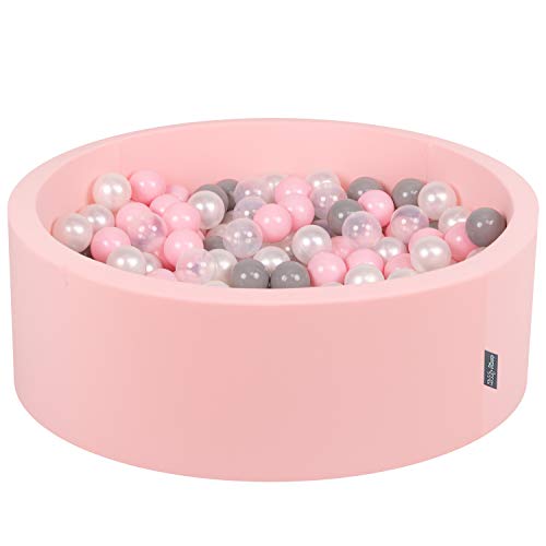 KiddyMoon Piscine À Balles pour Bébé Rond 90X30cm/300 Balles 7Cm Fosses À Boules Jouet Enfant, Rose: Perle/Gris/Transparent/Rose Poudré