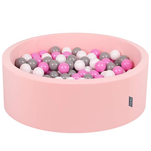 KiddyMoon Piscine À Balles pour Bébé Rond 90X30cm/300 Balles 7Cm Fosses À Boules Jouet Enfant, Gris Foncé: Gris/Blanc/Rose