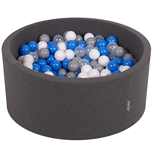 KiddyMoon 90X40cm/300 Balles ∅ 7Cm Piscine À Balles pour Bébé Rond Fabriqué en UE, Gris Foncé:Gris/Blanc/Bleu/Transparent