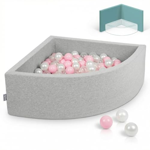 KiddyMoon Piscine À Balles pour Bébé Quart Angulaire 90X30cm/200 Balles 7Cm Fosses À Boules Jouet Enfant, Gris Clair: Rose Poudré/Perle/Transparent