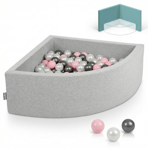 KiddyMoon Piscine À Balles pour Bébé Quart Angulaire 90X30cm/200 Balles 7Cm Fosses À Boules Jouet Enfant, Gris Clair: Vert Cl/Jaune/Turq/Orang/Rfoncé/Violet