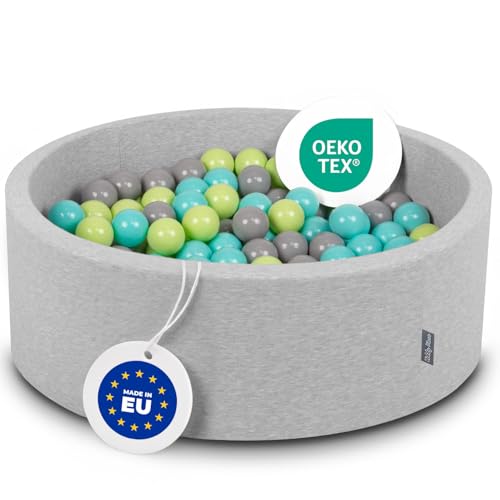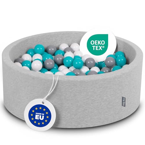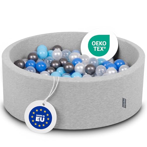 KiddyMoon 90X30cm/200 Balles ∅ 7Cm Piscine À Balles Pour Bébé Rond Fabriqué En UE, Gris Foncé: Baby Blue/Bleu/Perle