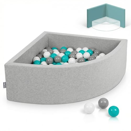 KiddyMoon Piscine À Balles pour Bébé Quart Angulaire 90X30cm/200 Balles 7Cm Fosses À Boules Jouet Enfant, Gris Clair: Gris/Blanc/Turquoise