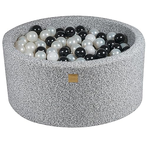 MEOWBABY Piscine À Balles pour Bébé - Rond 90x40cm Piscine a Balle pour Enfant avec 300 Balle, Boucle, Gris Chiné: Noir/Blanc/Perle Blanc