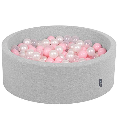 KiddyMoon Piscine À Balles pour Bébé Rond 90X40cm/300 Balles 7Cm Fosses À Boules Jouet Enfant, Gris Clair:Rose Poudré/Perle/Transparent