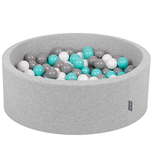 KiddyMoon Piscine À Balles pour Bébé Rond 90X30cm/300 Balles 7Cm Fosses À Boules Jouet Enfant, Gris Clair:Gris/Blanc/Turquoise