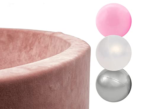 MISIOO Velvet Piscine a Balle pour Bébé - Piscine pour la Chambre des Enfants - Piscine à Balles Bébé- 150 Balles - Lavable en Machine - Oeko-Tex - 90 x 30 cm- Rose- Rose/Blanc/Argent