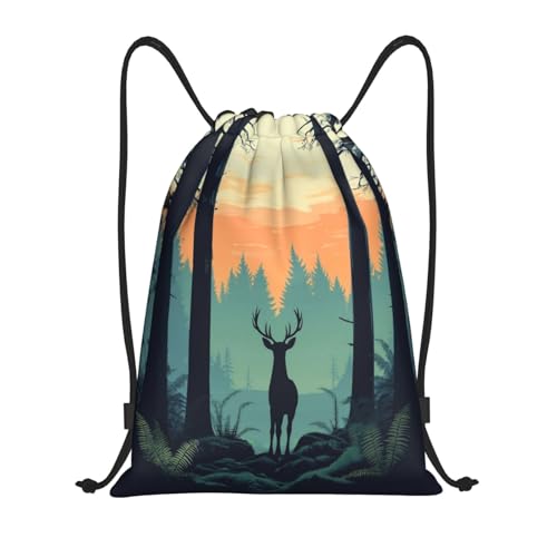 Cerf En Silhouette Dans Les Bois Au Coucher Du Soleil Unisexe Sacs De Sport Léger Sac À Cordon Avec Cordons De Serrage Gym Sack Pour Gymnastique Piscine Plage