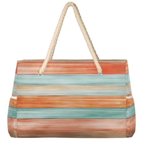 Dusviba Grand sac fourre-tout de plage vintage coloré imprimé en bois avec fermeture éclair, imperméable, résistant au sable, avec poignées en corde, plusieurs poches pour femme, voyage, piscine
