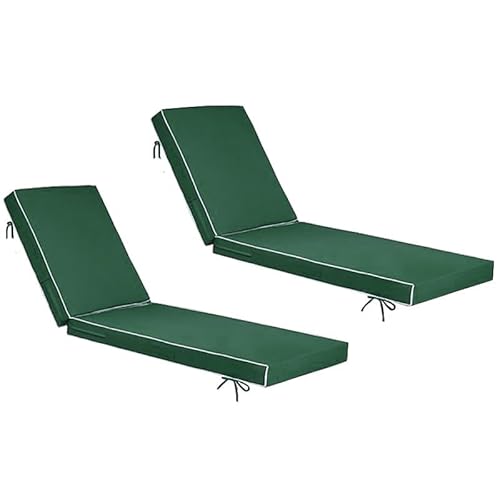 Coussin De Chaise Longue Pour Bain Soleil – Transat Imperméable D'extérieur Avec Attaches, Housse Amovible, Lot 2, Résistant Aux UV Et À L’eau, Épais 4 Cm, Pour Jardin, Terrasse Ou Piscine(Dark green)
