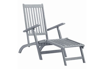 Acacia Chaise Longue d'Extérieur avec Repose-pied Transat de Jardin Pliant Inclinable Terrasse Patio Piscine Camping Plage Délavage Gris